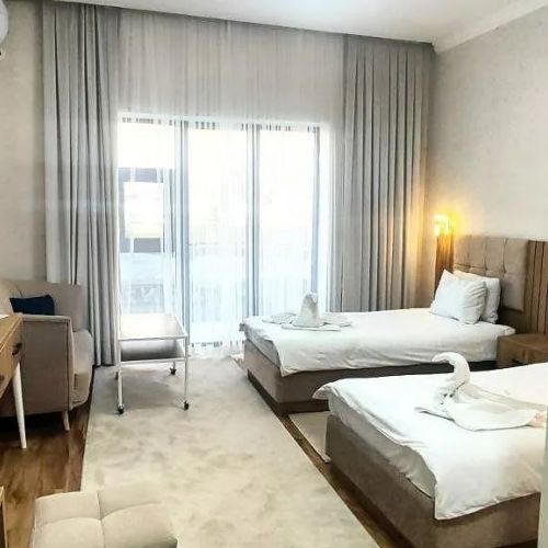 Размещение предлагается в номерах различных категорий: стандартных, полулюксах, люксах и семейных коттеджах. Питание организовано по системе трёхразового диетического меню с возможностью предварительного заказа блюд, а также включены сезонные фрукты.