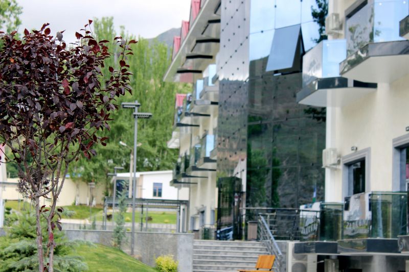 Сервисные услуги охватывают регистрацию и размещение, беспроводной интернет, предоставление гигиенических наборов и свежего постельного белья, работу фитобара, парковку, охрану территории, экскурсионное обслуживание и доступ к библиотеке. На территории расположен дом культуры вместимостью до 200 человек. Уборка в номерах проводится ежедневно, смена белья — каждые три дня. Гости могут воспользоваться аптекой и чайханой.